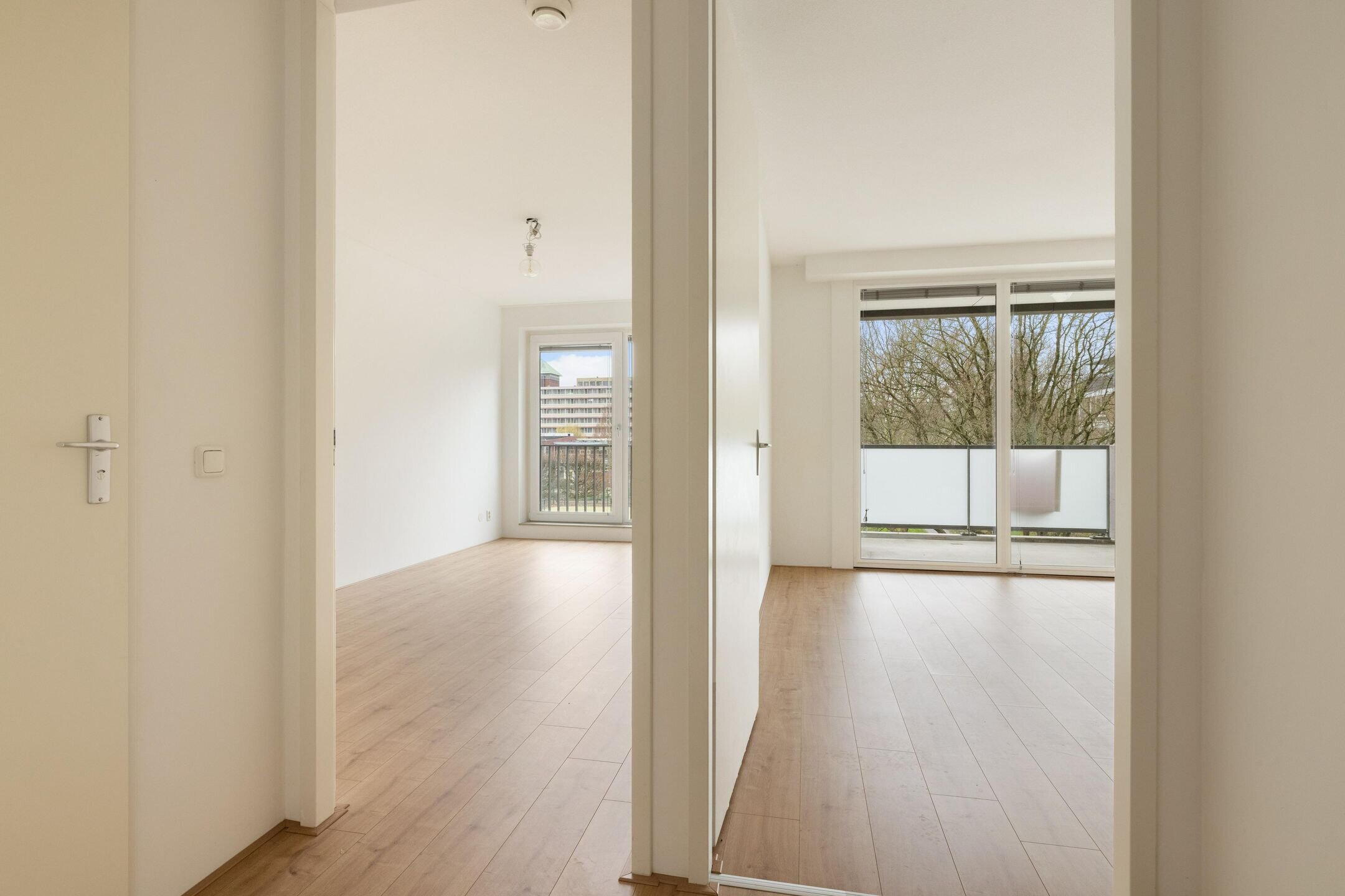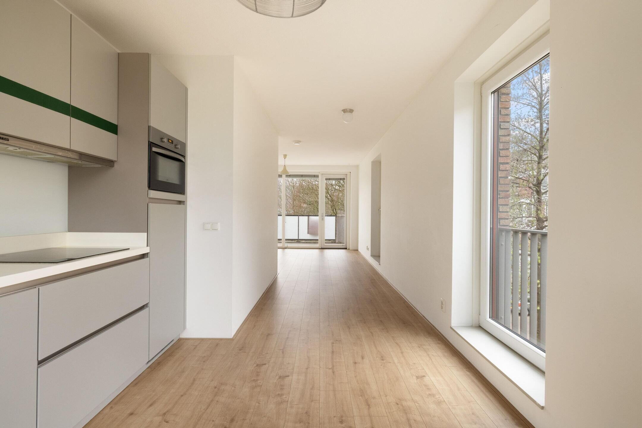 Bij binnenkomst betreedt u de hal die toegang geeft tot de lichte en uitnodigende woonkamer met open keuken. De grote raampartijen tot aan de vloer zorgen de hele dag door voor prachtig daglicht. Vanuit de woonkamer stapt u direct het ruime balkon op het zuiden op, ideaal om te ontspannen of te genieten van een drankje met uitzicht op het groene landschap.
