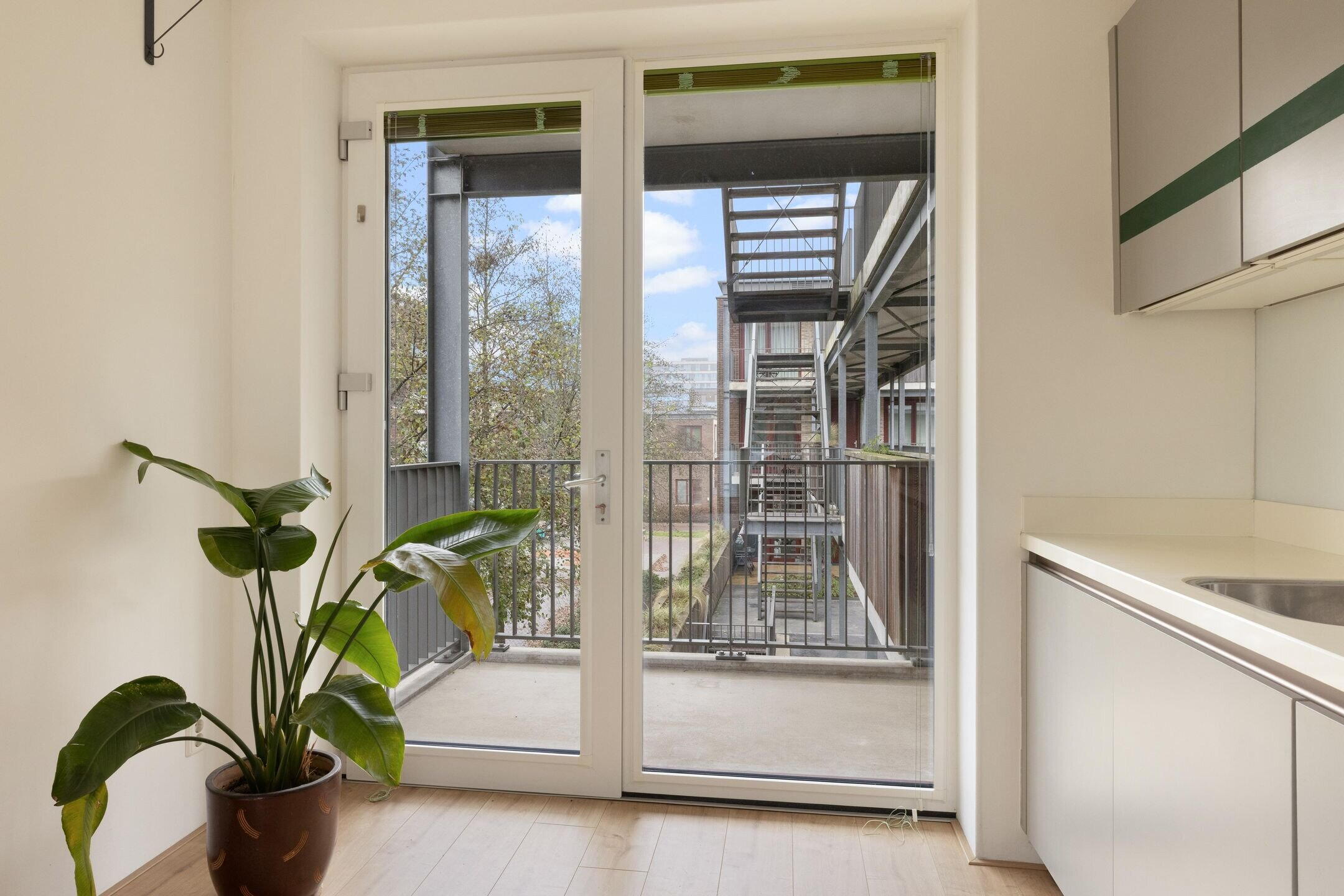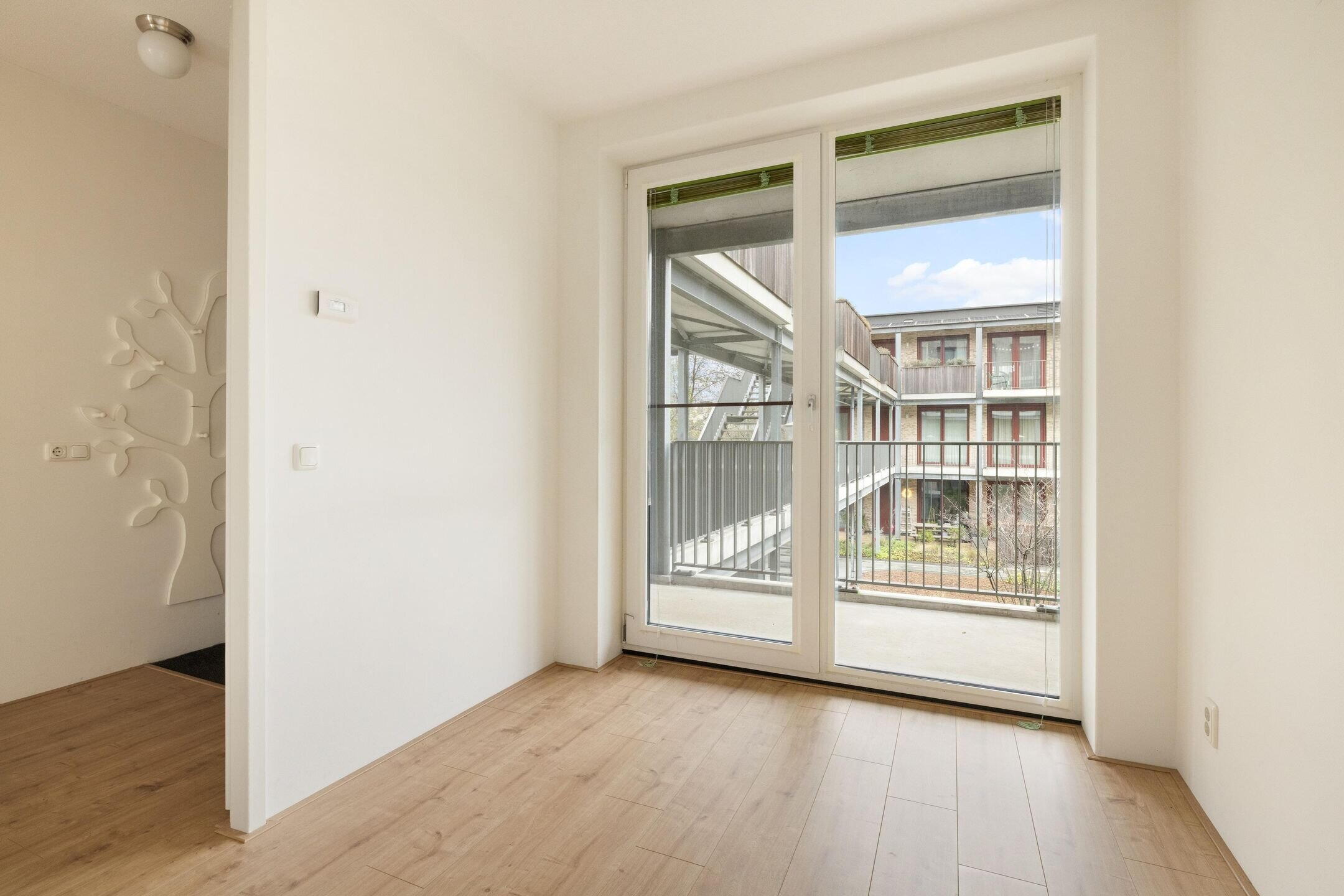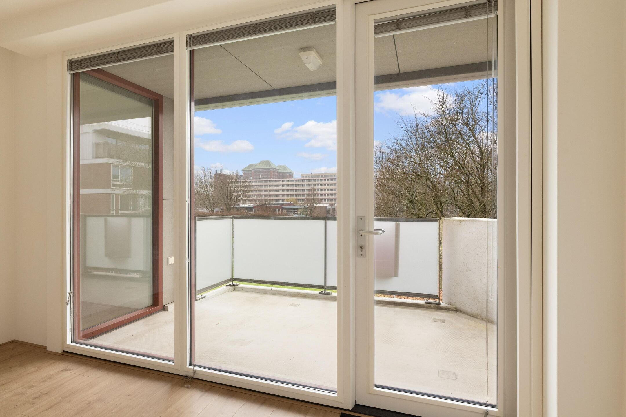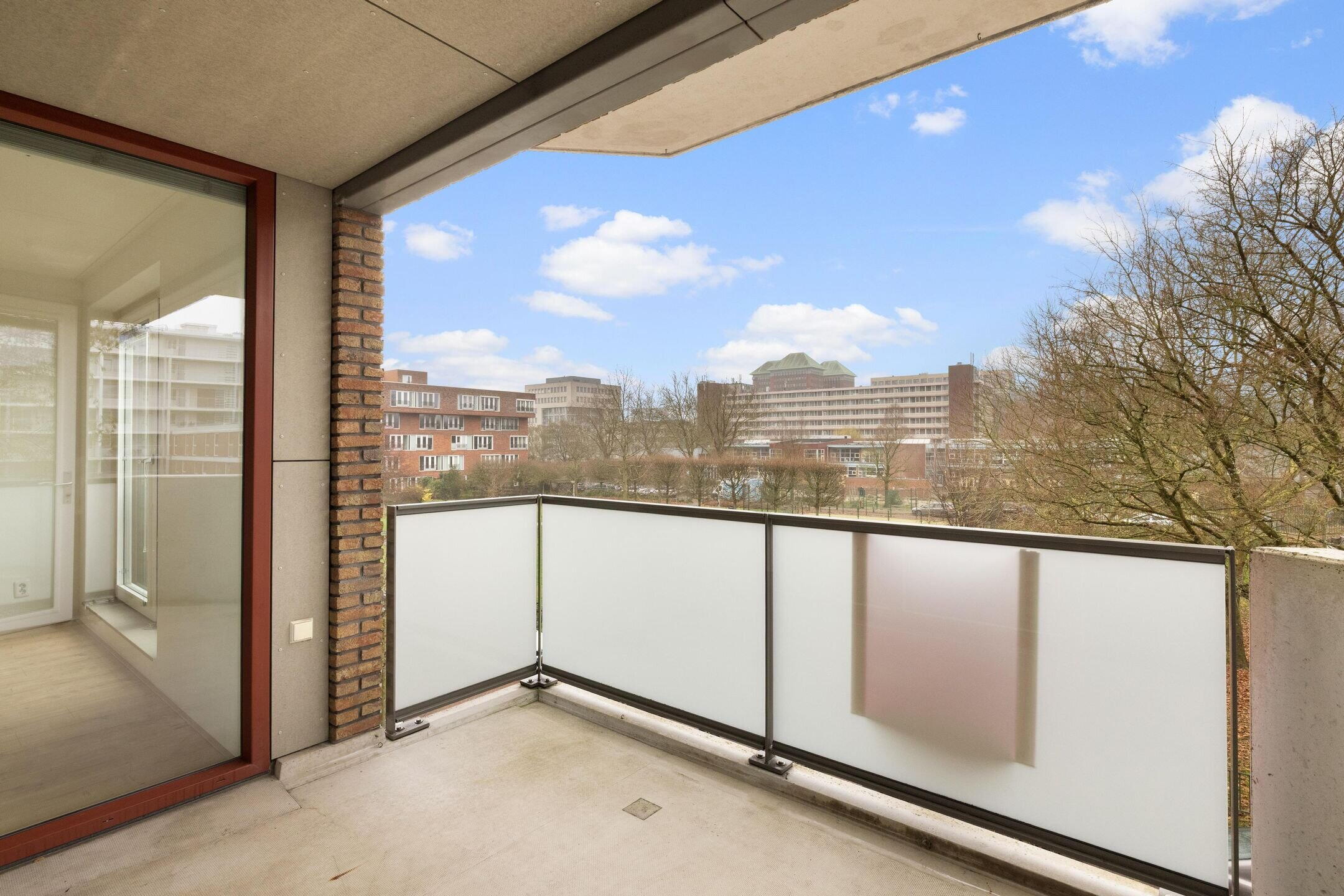 Het privébalkon op het zuiden biedt volop zon en vrij uitzicht. Bewoners hebben daarnaast toegang tot de prachtig aangelegde gemeenschappelijke binnentuin, een rustige groene oase binnen het complex.